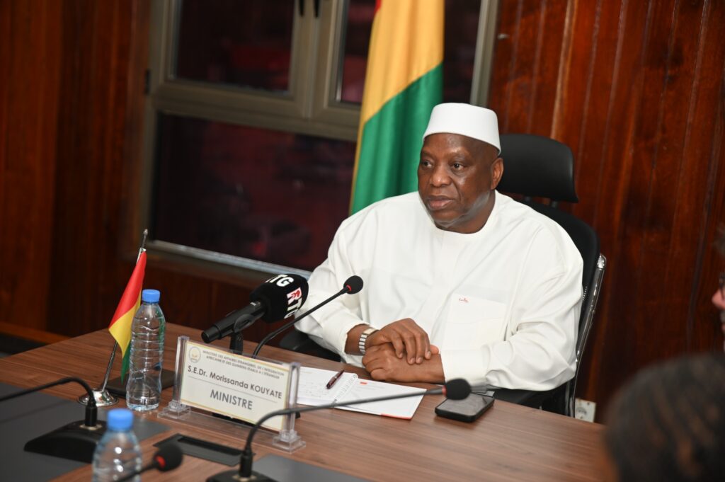 Il s’agit de représentants d’institutions financières et des chefs d’entreprises qui s’intéressent à plusieurs secteurs en Guinée. Conduite par Son Excellence Monsieur Aly DIALLO, Ambassadeur de la République de Guinée à Londres et son homologue de la Grande Bretagne en Guinée, Monsieur Daniel SHEPHERD, la délégation à tout d’abord été reçue par Son Excellence Dr Morissanda KOUYATÉ , Ministre des Affaires Étrangères, de l’Intégration Africaine et des Guinéens établis à l’Étranger.